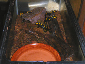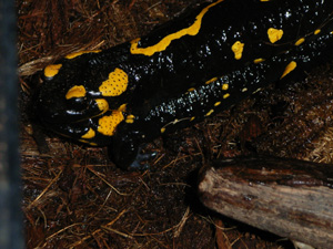 ファイアーサラマンダー (Salamandra salamandra salamandra ) 基亜種と呼ばれる種で最もよく見かける。東ヨーロッパの広域に分布しだいたいはウクライナ産で入荷することが多い。 ファイアーサラマンダーは亜種で分布国が重なるものが多く、採集場所が特定出来ない場合種の特定が難しい。一方で特徴のある亜種もいてコレクション性が高い為か人気がある。 完全陸棲種で卵でなく幼生を出産する。飼育は簡単・・と解説される事もあるが低温を好み人工餌に餌付きづらいのでそう簡単では無いと思う。(他の亜種よりは強い) 餌はコオロギを中心とした虫系、ナメクジ等を好む。ハニーワームも食べるがあまり好物では無さそう。 |
