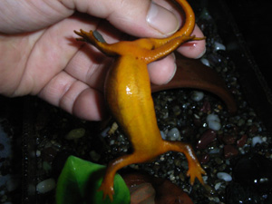 腹部 Taricha はだいたいが黄色かオレンジの腹部をもつ。 T.vivularisのみ腹部が赤いのでRed Bellied Newtと 呼ばれる。 |