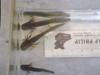 | 7/31 ほぼ鰓が吸収される。 | 8/3 変態 全長13.5cm |